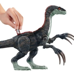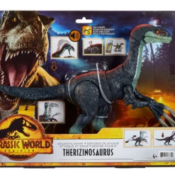 Get ready for thrills and exciting adventures with this Sound Slashin’ Therizinosaurus inspired by Jurassic World Dominion. This large dinosaur toy captures the ferocity of the Therizinosaurus, with epic sound effects, a lunging chomp attack action and huge claws for super side-slashing attacks!