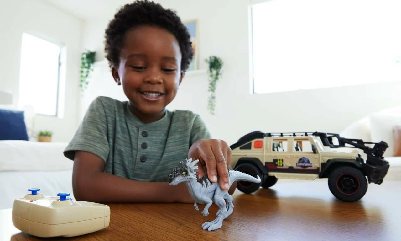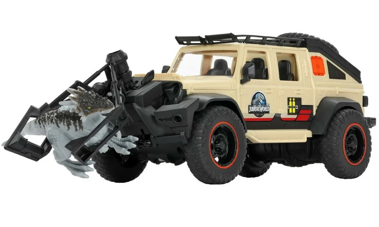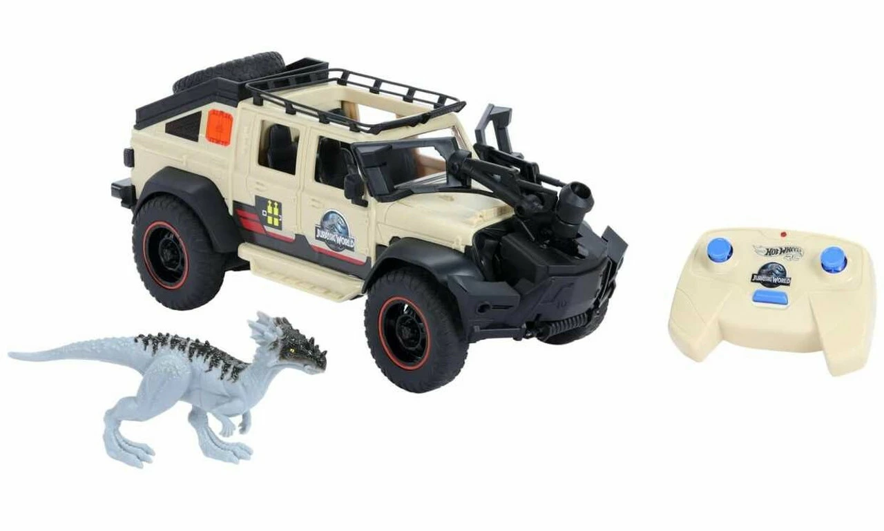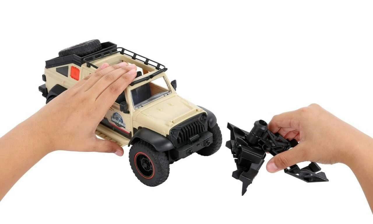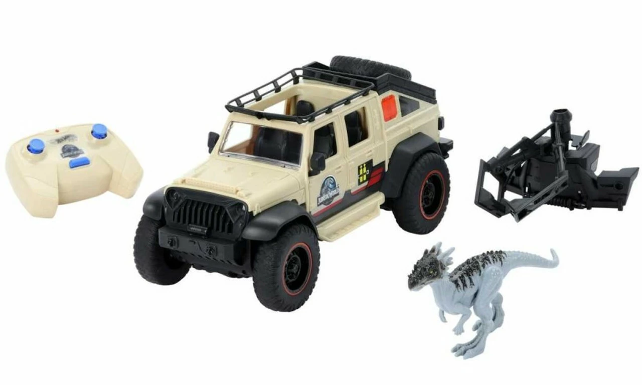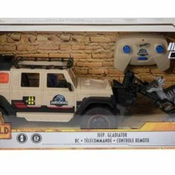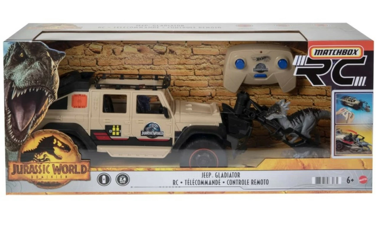 - Jurassic World Jeep® Gladiator R/C! The 1:18 R/C vehicle comes with remote control, removable capture claw and 6-inch Dracorex Dino figure that encourage independent storytelling adventures.