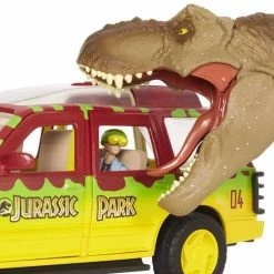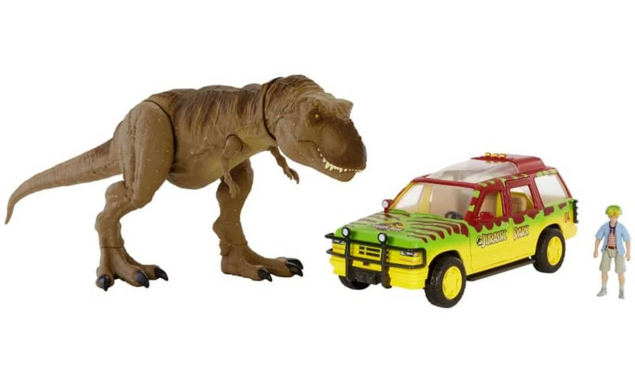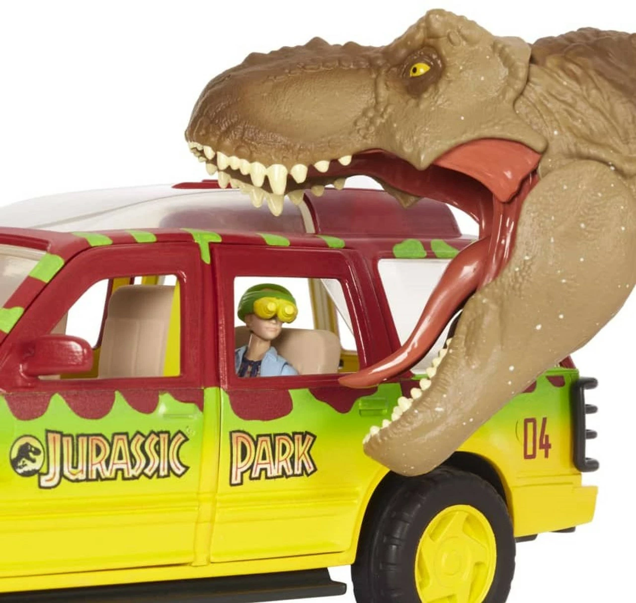 - This pack with 2 figures, 1 vehicle and 1 accessory is based on the terrifying scene in Jurassic Park where the T. rex has Tim Murphy cornered in the Ford Explorer, and tears the roof off to get to him!