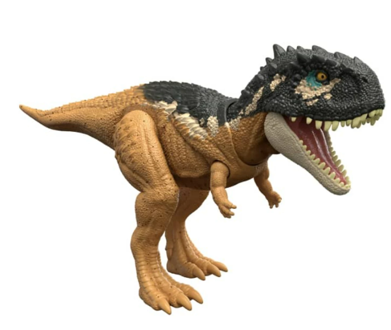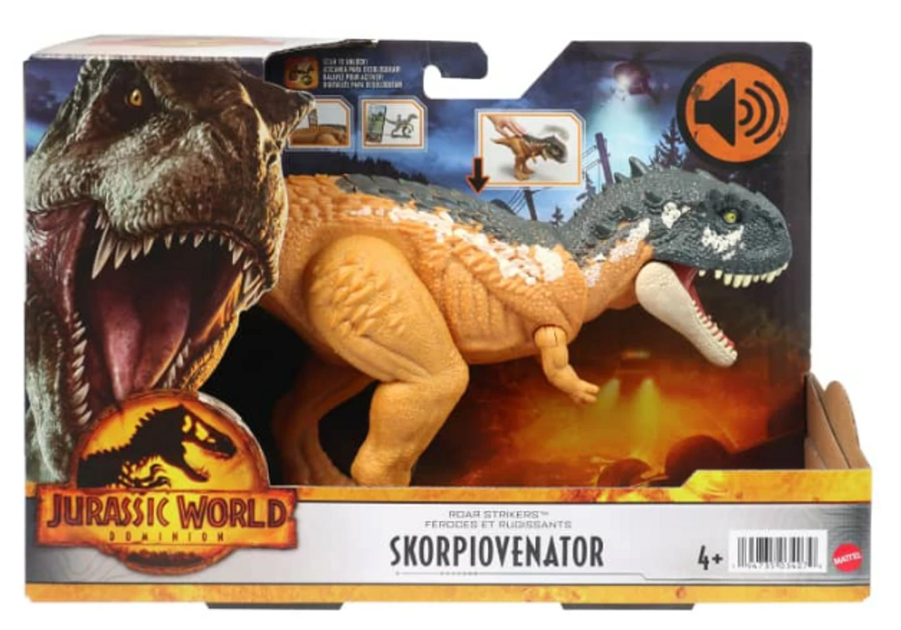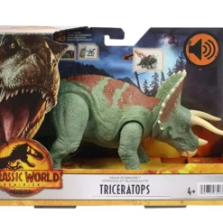 Get ready for thrills and adventure with this Sound Slashin’ Therizinosaurus inspired by Jurassic World Dominion. This large action figure captures the ferocity of the dinosaur, with epic sound effects, a lunging chomp attack action and HUGE claws for super side-slashing attacks! This dinosaur is critical to the action of Jurassic World Dominion and this figure features movie inspired sculpting, movable joints, authentic color and realistic texture. Bring this terrifying creature TO LIFE with extended digital play using Augmented Reality! Dare to see how REAL dinosaur play can get! Just scan the hidden DNA code with any smart device to unlock the AR experiences in the free Jurassic World Facts app. Smart device not included. Colors and decoration may vary. For fans of dinosaur action play ages 4 years old and up. Features: Jurassic World Dominion brings new dinosaur action and thrills, including this exciting large Sound Slashin’ Therizinosaurus action figure. Watch out for the HUGE claws that make side-slashing attacks! Hear epic sound effects and experience a lunging action completed with a CHOMP! This terrifying dinosaur stars in a critical role in the movie and can play a huge part in at-home storylines, too! Download the free Jurassic World Facts app (Android and iOS) and see dinosaur play get REAL! Find the hidden DNA code and scan it with any smart device to initiate Augmented Reality (AR) options. Smart device not included. AR lets kids study the dinosaur in the lab with fun visual learning and explore different modes, like thermal and x-ray! Then, take it to the next level and bring dinosaurs into our world through AR — make the dinosaur appear in any room. RUN!