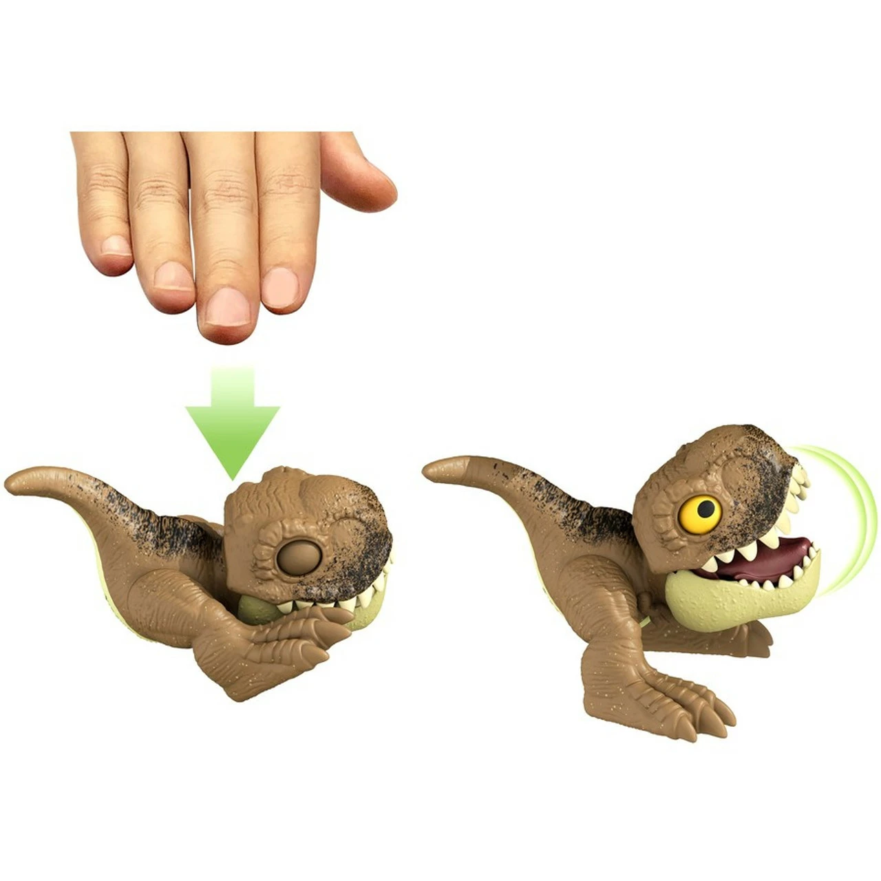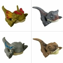 These creatures feature stylized designs of dinosaurs from throughout the Jurassic World franchise. They have multiple poses, starting with a sleepy look. One press on the head, and the dino springs into action, ready to attack with mouth open. Another tap on the head and the dinosaur figure goes back to it back to its tame, sleepy look. Press again for the upright position, balanced on the back tail, like a baby bird ready for feeding. These pet-like toys make great gifts for ages 4 and up.?