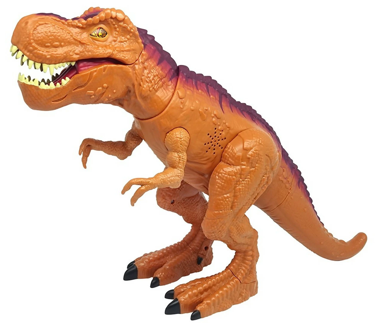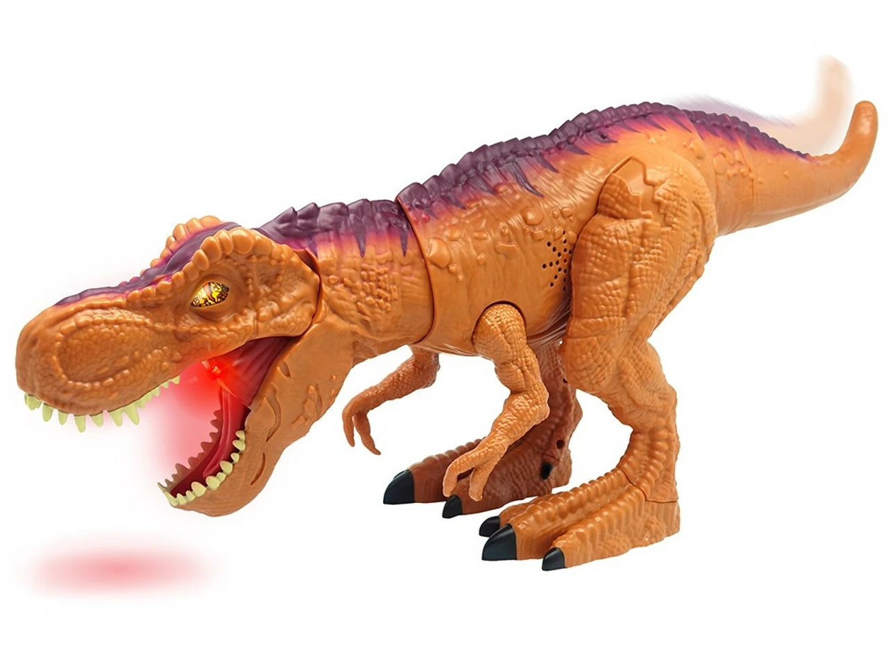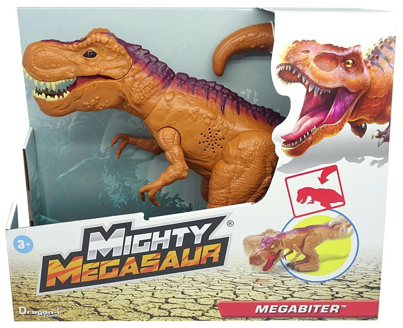 Tail activation let’s MegaBiter T-Rex move its head and open it’s mouth to bite! In addition to authentic sculpt and decoration, the MegaBiter T-Rex has sound effect features like chomping, an impressive roar and a huge bite. Watch as its eyes and mouth light up for more fun!