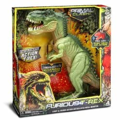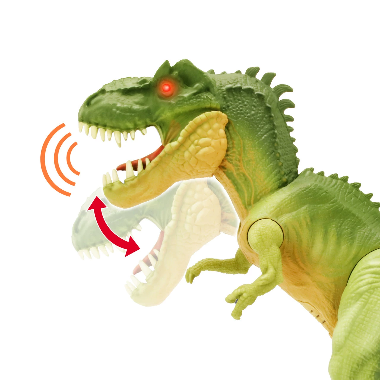 “* 12″” IMPACTFUL ARTICULATED DINOSAUR HAS CHOMPING JAW, LIGHT-UP EYES AND A FEARSOME ROAR. * LIGHT & SOUND FEATURES ARE OPERATED BY 2 X AA BATTERIES (INCLUDED FOR TRY ME). * AVAILABLE IN GREEN AND RED COLOR. “