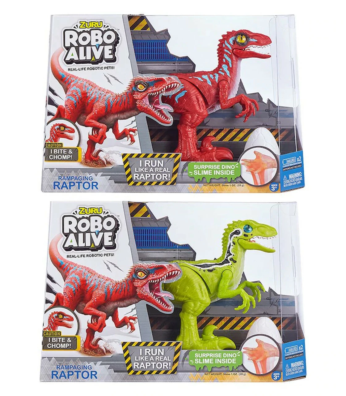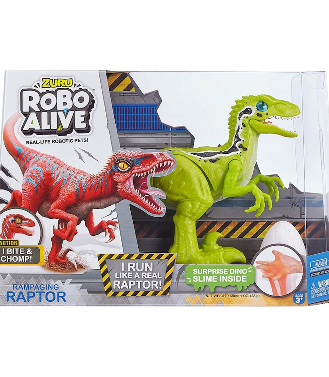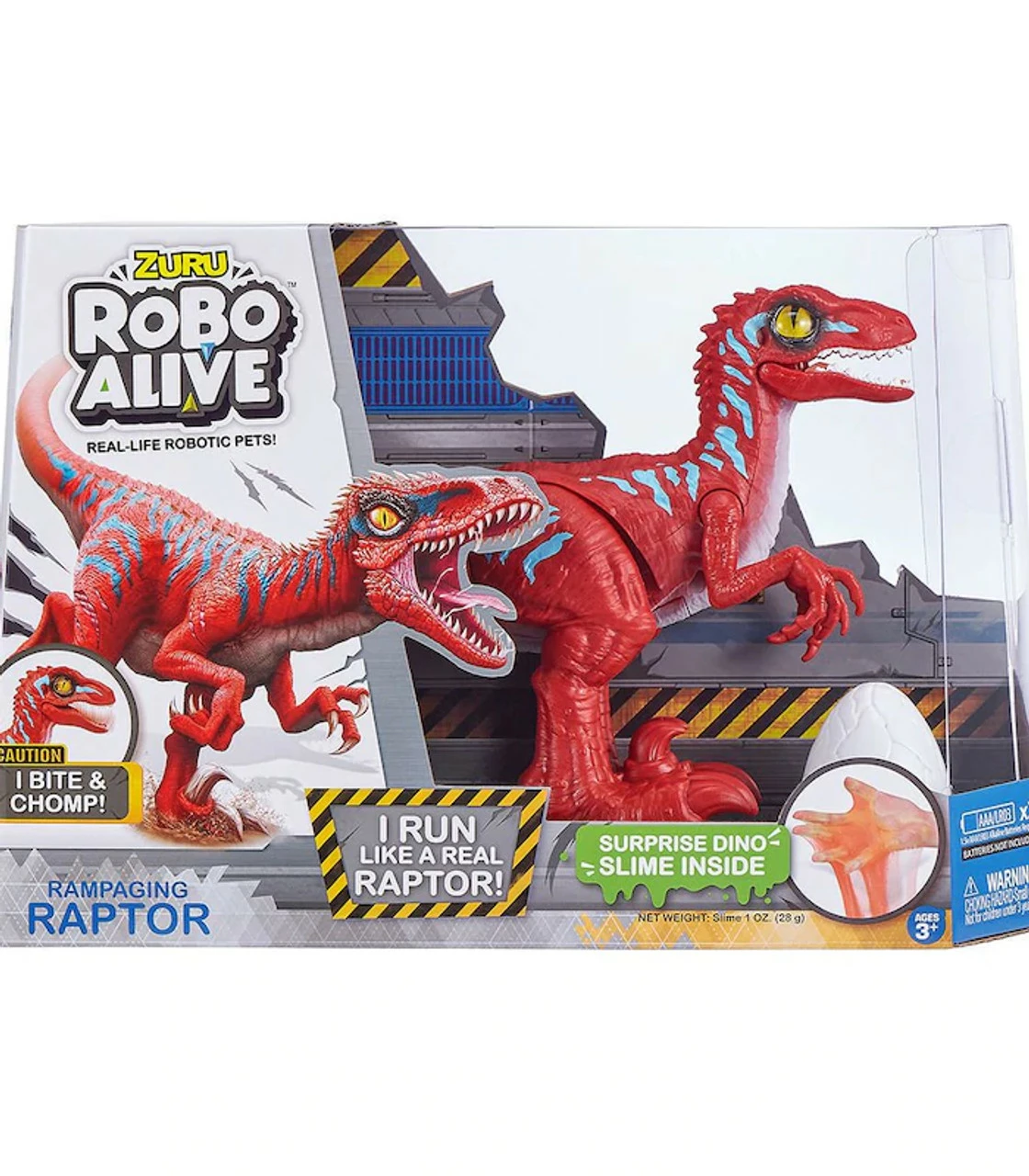 ZURU’s new Robo Alive Rampaging Raptor runs and bites like a real dinosaur! With a super realistic design, fast clawing movements and advanced robotic technology, this Raptor outruns all other predators. There’s new glow in the dark Dino Slime to discover inside the Dino Egg too! Don’t let it catch you and beware of what’s inside the Dino Slime Surprise! It’s more than alive – It’s Robo Alive! Suitable for ages: 3+ years.