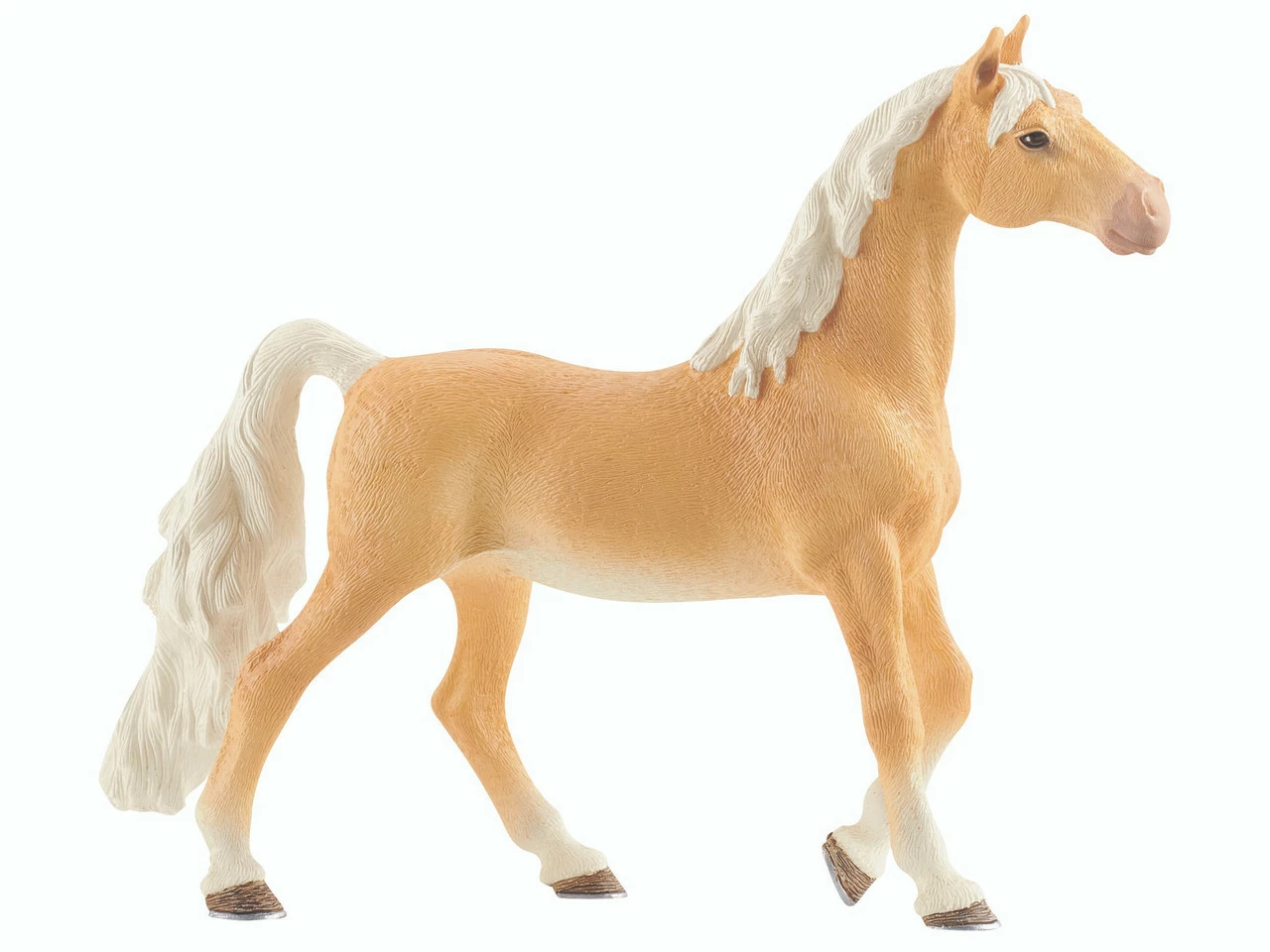 Schleich® figurines are modelled in the finest detail to help children learn while they play. The American Saddlebred mare by Schleich® Horse Club carries her head and long tail very high, as is typical for this horse breed. In the past, American Saddlebreds were used as riding and driving horses by the American settlers. Today they are mainly used as show horses. Some not only master step, trot and gallop but also the slow gait and so-called rack gaits. Both are pleasantly soft, four-beat movements.