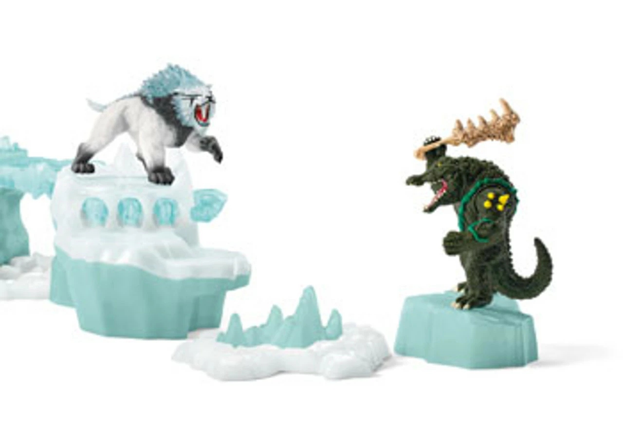 The battle crocodile storms the trap-riddled ice fortress where the super weapon is guarded by the mighty saber tooth tiger! The fight for the super weapon continues in the brand new jungle world! Lots of functions to activate! Modular design! With secret hiding place! Weapons interchangeable.
