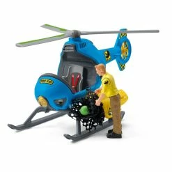 The helicopter from Schleich® DINOSAURS Attack from the Air is perfect for following and catching dinosaurs from the air. Dino researcher Luis specially developed a tranquilizer cannon to be attached to the helicopter. Luis takes to the air to take a round flight in his helicopter. But be careful! A large Tapejara isn’t at all pleased to find the helicopter has entered its territory, and immediately takes chase. Luis skillfully uses the control stick to make a fast 180 degree turn. The Tapejara tries to swerve but Luis activates the tranquilizer dart and net perfectly. The dinosaur is caught and can be easily carried with the winch on the helicopter.