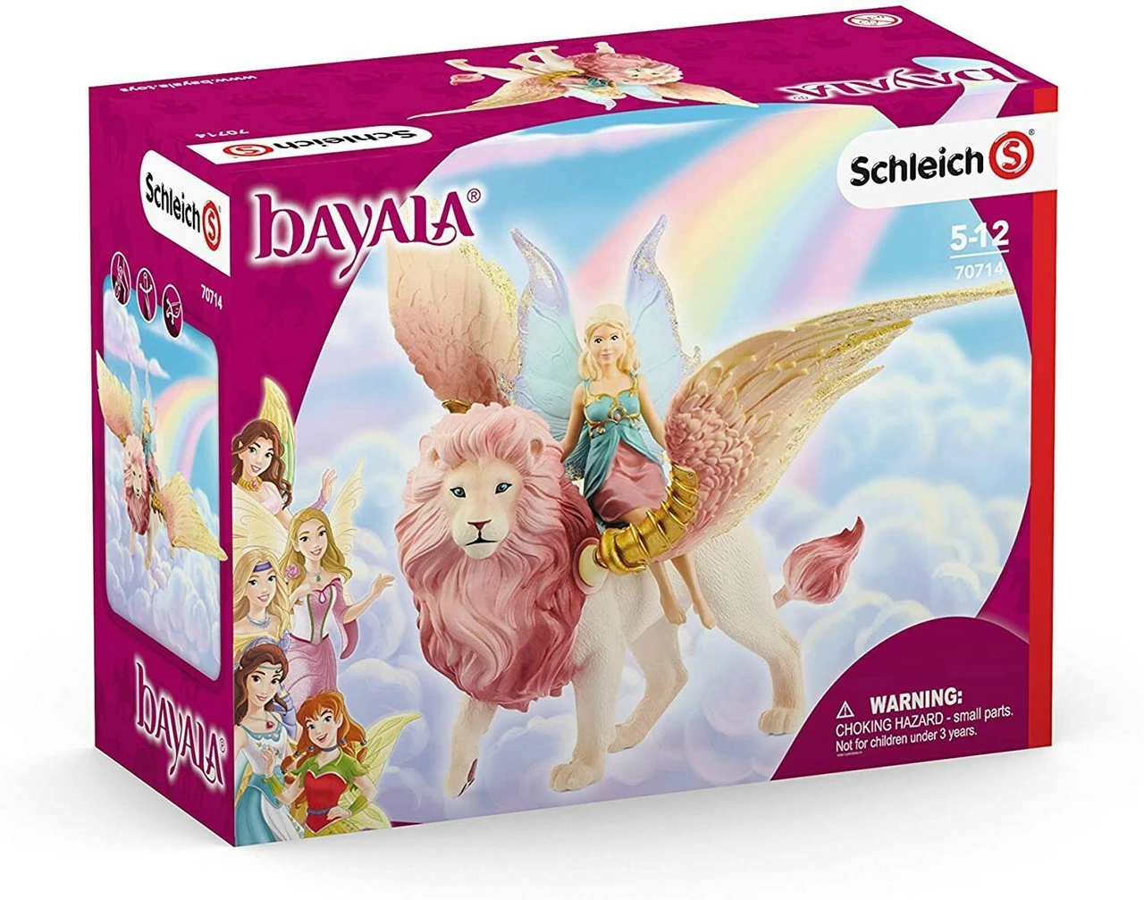 Long before you see the fairy on the glittering owl, the inhabitants of bayala® feel its magic when they float gracefully through the air. From up there, the fairy waves to all the inhabitants in a friendly manner. The full pink mane and the richly decorated wings of the white lion glitter golden in the sunlight. Together with the fairy, the magical creature flies gently over the vastness of the colorful flower fields of bayala. Once there, they are curiously welcomed by the other fairies. The strength and courage of this majestic magical creature are known throughout the fairy kingdom.