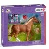 The little girl is completely enchanted by the little English Thoroughbred foal that is prancing around on the pasture. She’s incredibly proud that she’s allowed to feed it from a bottle and wrap it in a warm foal blanket every day. They’re already firm friends.