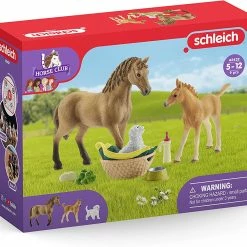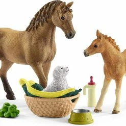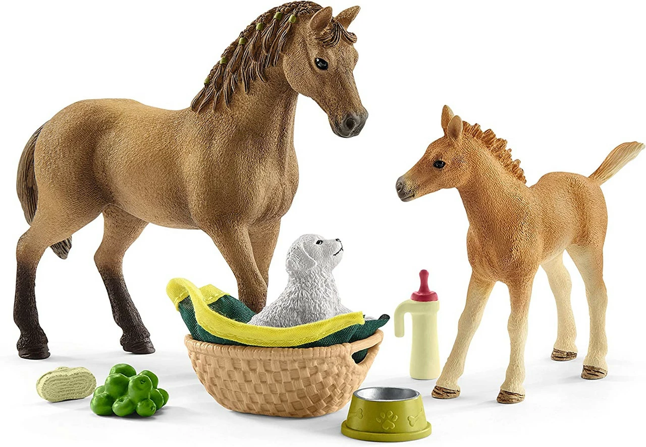 - Learn how to take care of your quarter horse, her foal, and the small puppy with this playset.