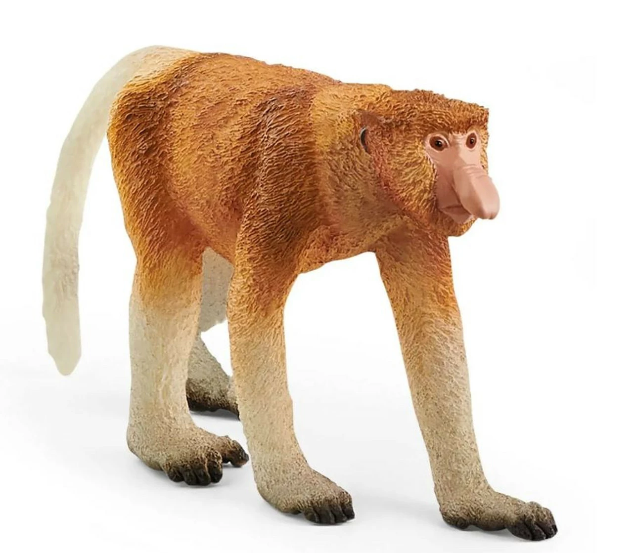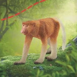 The Proboscis Monkey from Schleich® WILD LIFE is a primate that lives in rainforests and mangrove forests on the Asian island of Borneo. The males have a strikingly large nose that can be up to 10 cm long. But they don’t have a strong sense of smell. Researchers believe that it is used to impress females. Proboscis Monkeys are day-active mammals who live in small groups and feed on leaves and fruits.