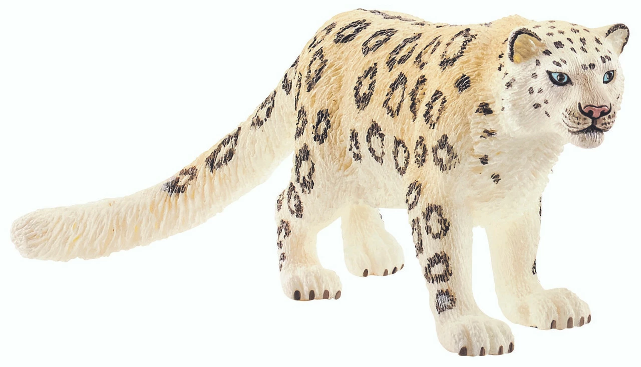 The snow leopard is a large cat that lives in the high rocky mountains of Central Asia. It feeds mainly on sheep, ibex and goats. Thick fur protects it against freezing cold temperatures but its beauty means that many animals fall prey to poachers. That’s why the snow leopard is an endangered species. A special feature is its tail which, like the snow leopard from Schleich® Wild Life, is nearly as long as its body. Fun Fact: The snow leopard uses its long, bushy tail as a rudder when jumping and also to protect against the cold.
