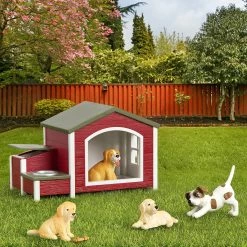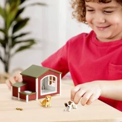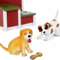 - Includes: 2 miniature toy puppies, 1 toy doghouse with dog bowl and storage container, 1 bone