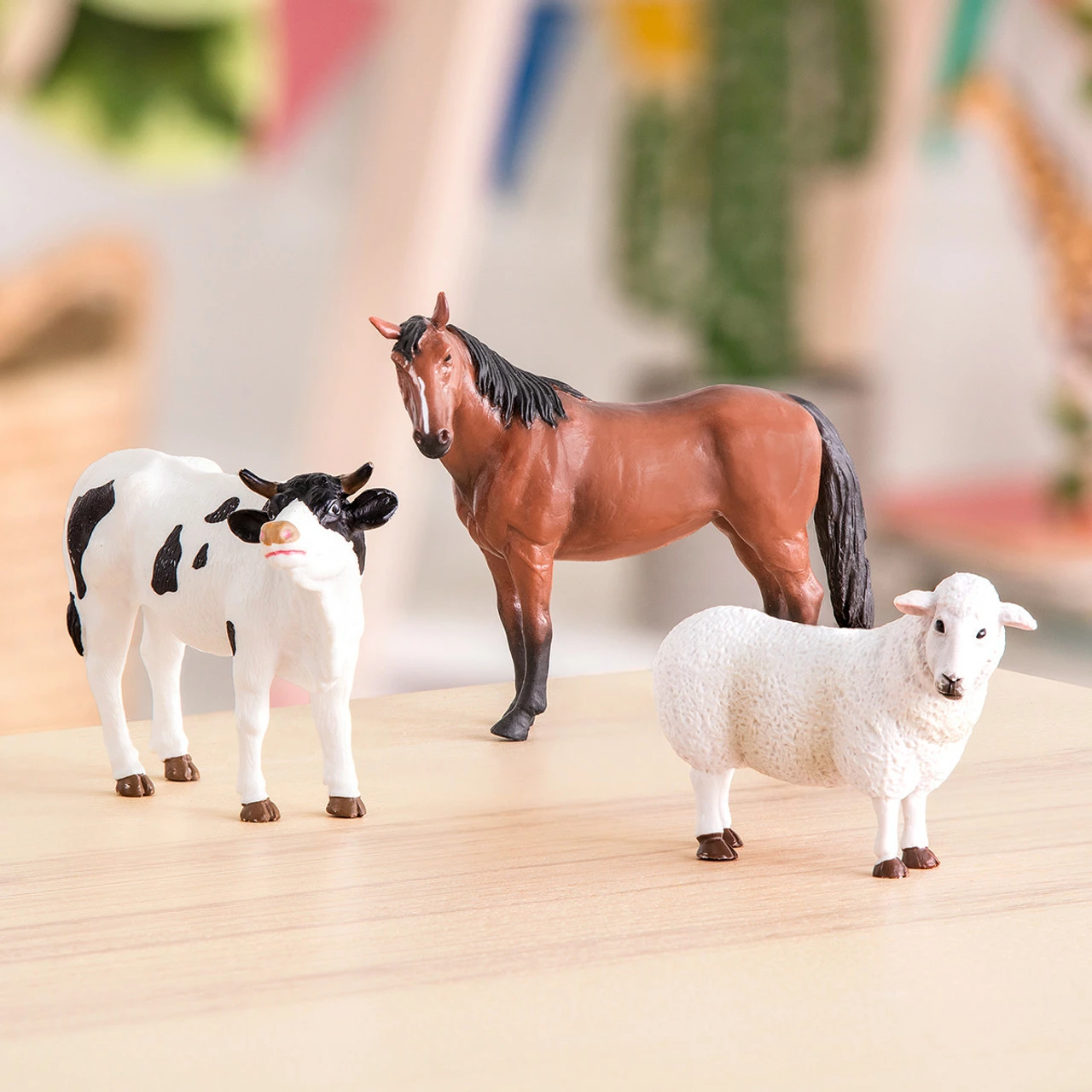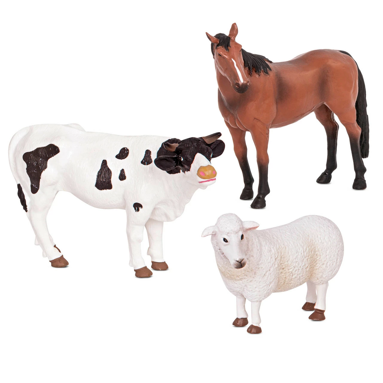 - Includes: Three farm animal toys with bold and classic design: a sheep, horse and cow.