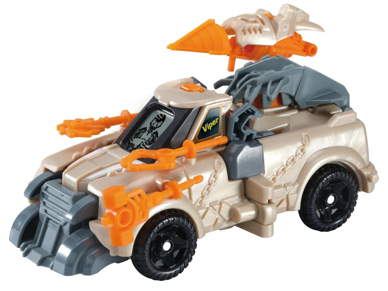 Attach the four included projectiles onto Viper, or put them into the launcher to see them fly! Press the action button in dino mode to see Viper move his head and roar with lights! Press the sounds button to hear exciting dino and car sound effects, fun phrases and more! Hear even more great sound effects when switching Viper between dino and car modes!